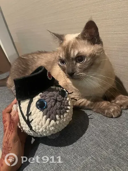 Toby has blue eyes, a cross breed of siamese and ragdoll. Has not been chipped. Age of 11 years old . Toby gets easily frightened by loud noises.