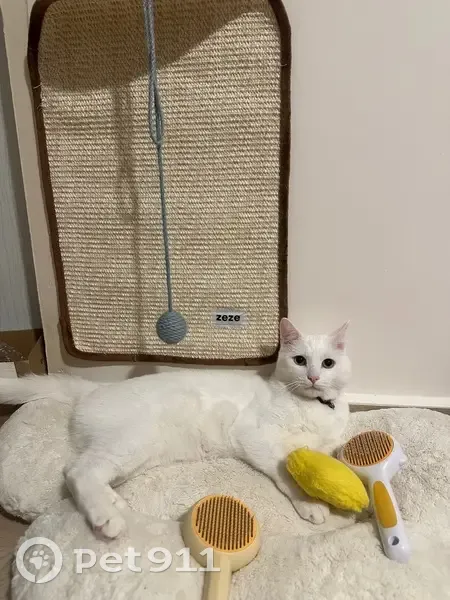 Ding Ding Pure White cat, short fur, yellow eyes, 2.5yo, male, sterilized. Likes treats and being touched on head and back of the neck When is missing he has no collar, sterilized Very shy boy, about 4.5kg