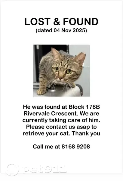Found cat Singapore, photo: Friendly Cat Found on Jurong West St 42